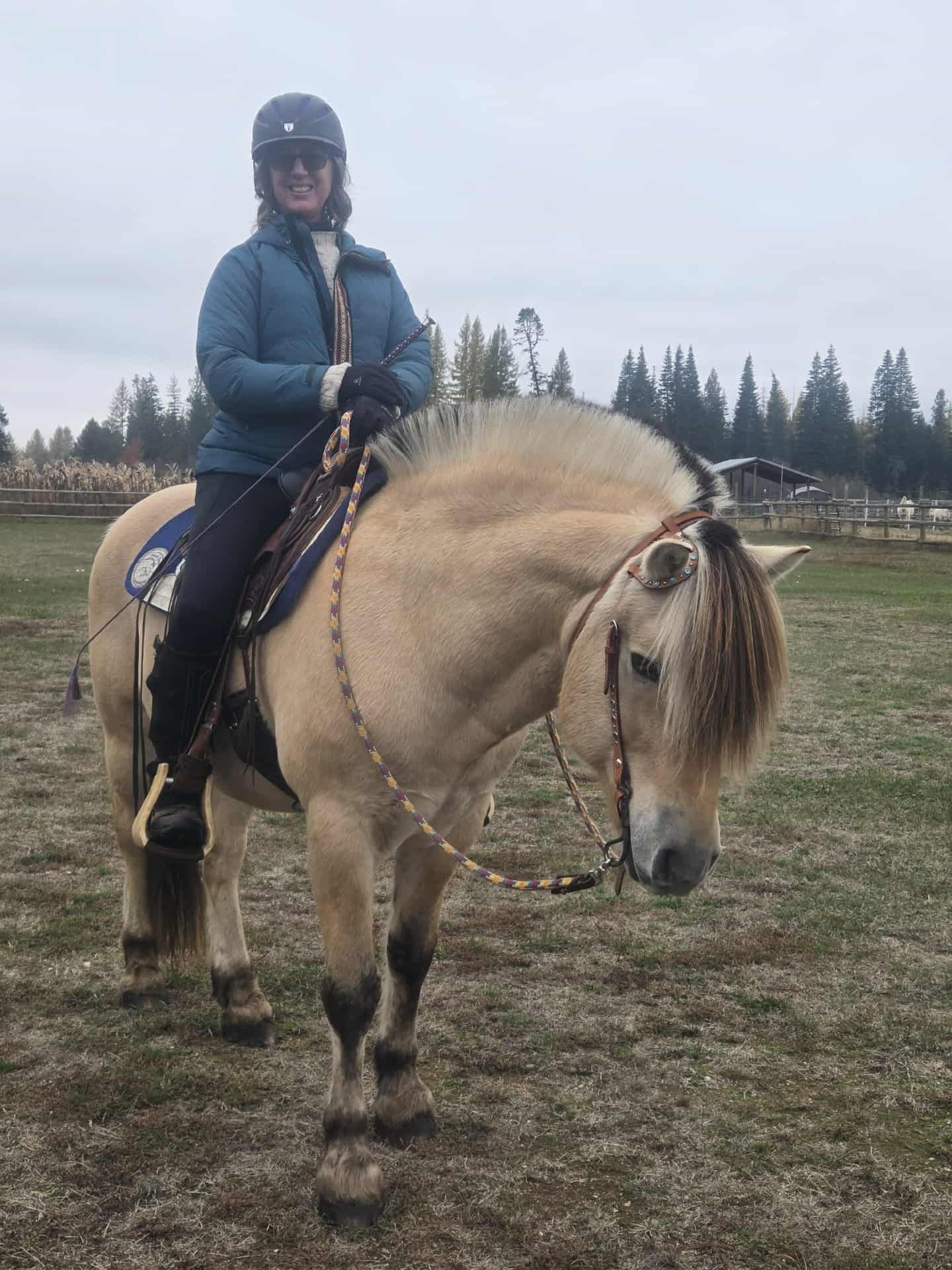 I rode a stallion! It wasn’t exactly on my bucket list, but I’m putting it on now so I can check it off. For my non-horsey friends out there, stallions can be a challenge because they have one thing on their mind: breeding mares. Some are ill mannered or unpredictable. My friend’s stallion, Viljar, is a gentleman, and even more so outside of the breeding season. He is also very well trained and sensitive; you need soft hands, and he responds quickly to your seat and legs. I have been trying to be less reliant on my hands and reins, but old habits die hard. My ride on Viljar was difficult, because I wasn’t used to riding such a soft and responsive horse. I was over-cueing and confusing him. The ride was also delightful, because I had moments of connection, and could see how wonderful it would be to have such a responsive and light horse. Now I have new riding goals and expectations for my my lazy sluggish horse Vali to live up to. Poor Vali. In the spring, though, because winter is coming.